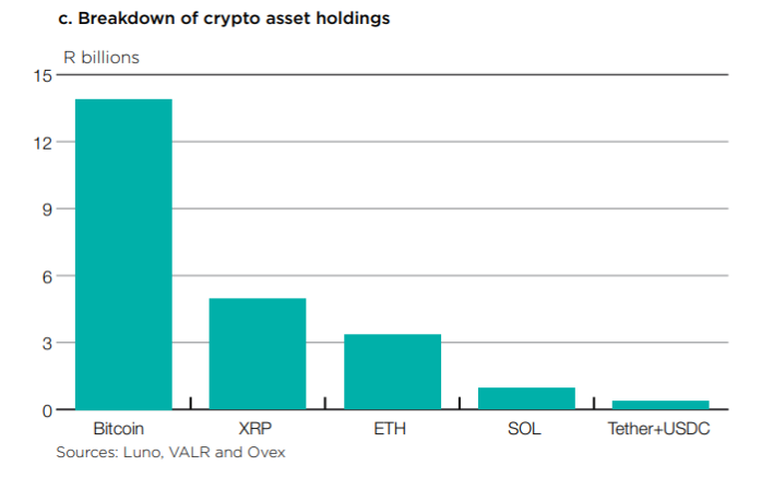 According to SARB’s findings from December 2024, bitcoin was the crypto asset of choice, accounting for the largest share of domestic crypto holdings valued at more than R13 billion ($759 million).